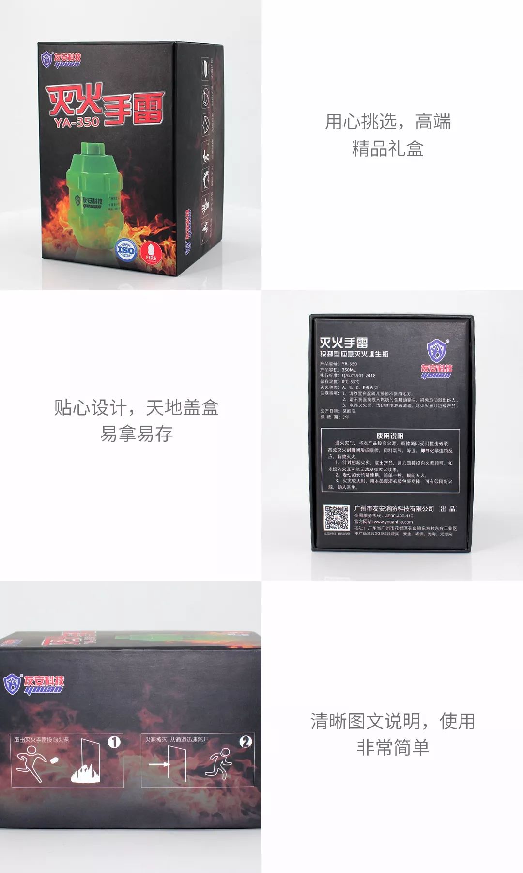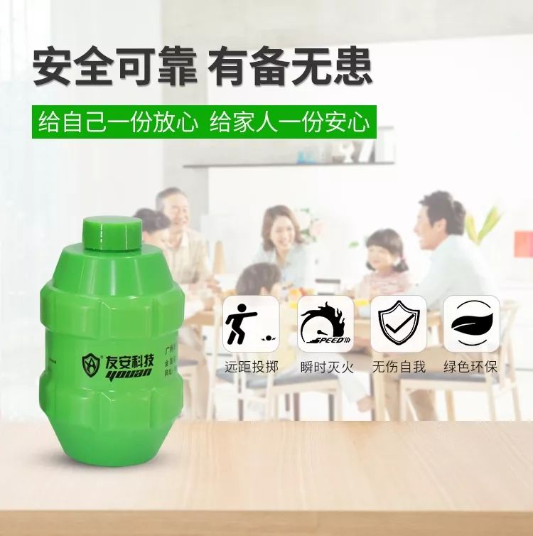 意外火災(zāi)無法預(yù)測,安全守護(hù)必不可少,友安滅火手雷簡單易用,滅火效果迅速,可在家庭任何角落放置一個(gè),也可便捷攜帶,隨時(shí)守護(hù)在你的身邊。