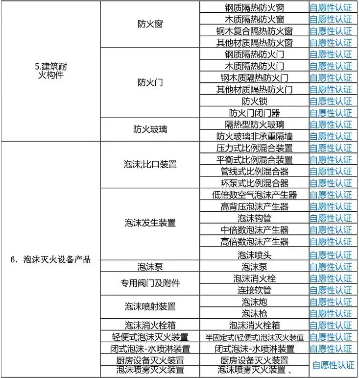 標注為"自愿性認證"的產(chǎn)品為應(yīng)急管理部消防產(chǎn)品合格評定中心發(fā)布的《關(guān)于對十三類消防產(chǎn)品開展自愿性認證工作的通知》應(yīng)急消評〔2019〕21號文件中公布的《十三類消防產(chǎn)品自愿性認證產(chǎn)品目錄》。