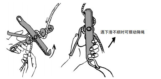 3.下降時控制好緩降器的調(diào)速手柄,以便安全勻速下降逃生;