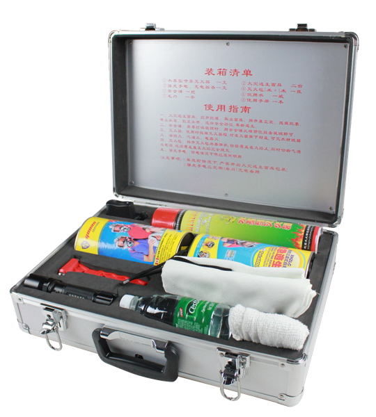 打開鋁合金箱,先取出火災(zāi)逃生面具,撕開產(chǎn)品包裝,戴在頭上然后拿出小型滅火器和滅火毯進(jìn)行滅火,如火勢過大不能撲滅時,選擇逃生路徑進(jìn)行逃生,逃生過程中可使用強(qiáng)光手電,安全錘,救生緩降器等應(yīng)急工具,如沒有有效路徑逃生,應(yīng)選擇相對安全位置等待救援。